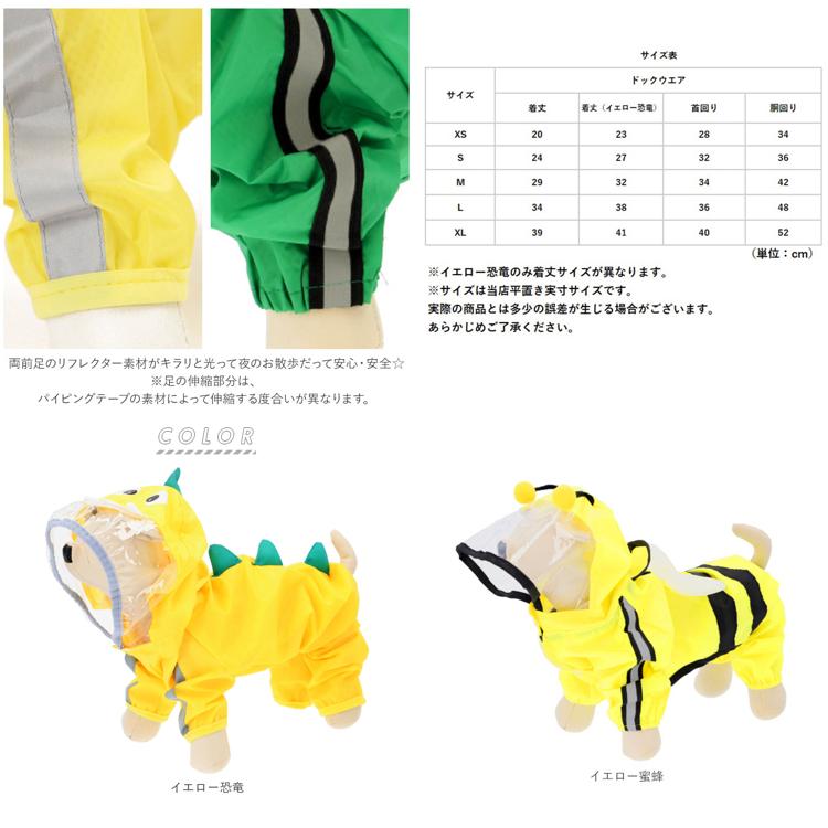 商品説明・雨の日は可愛らしい恐竜&アニマルに変身!ドッグ用レインコート。