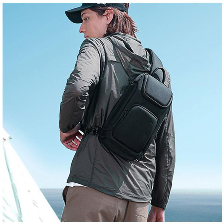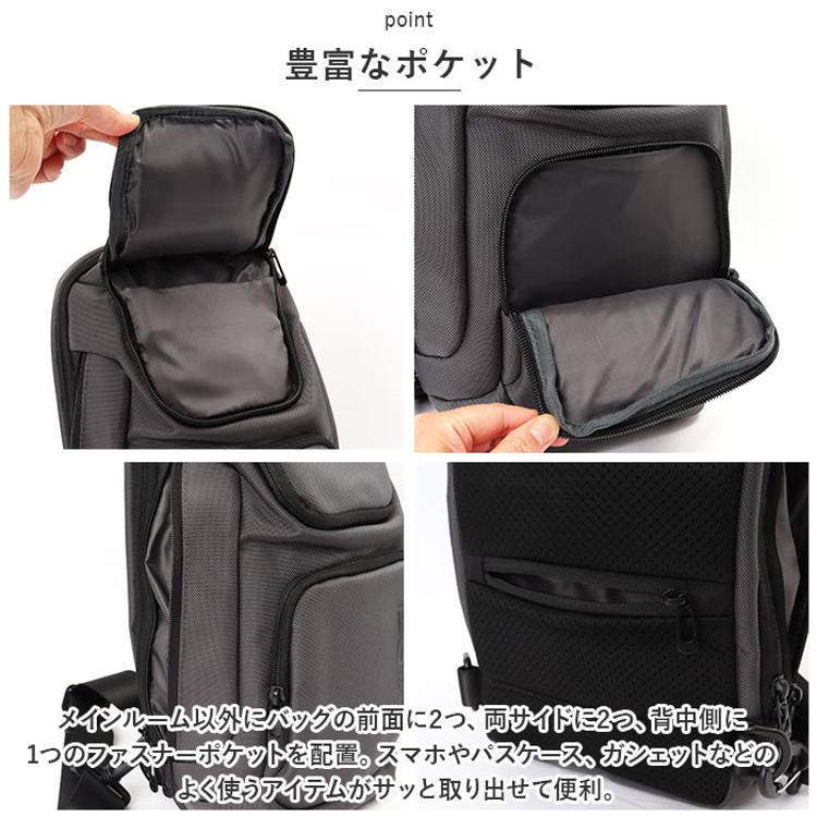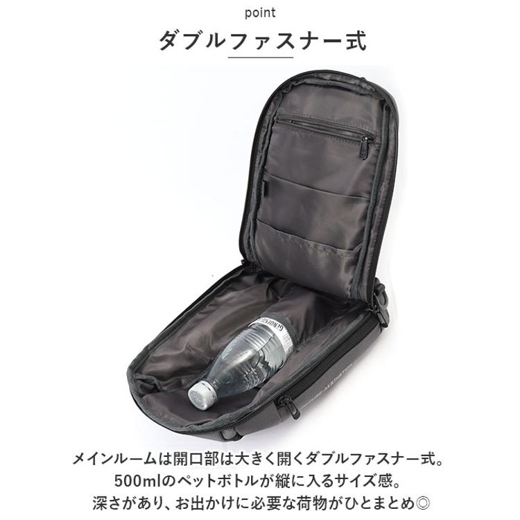 ・メインルーム以外にバッグの前面に2つ、両サイドに2つ、背中側に1つのファスナーポケットを配置。スマホやパスケース、ガシェットなどのよく使うアイテムがサッと取り出せて便利。