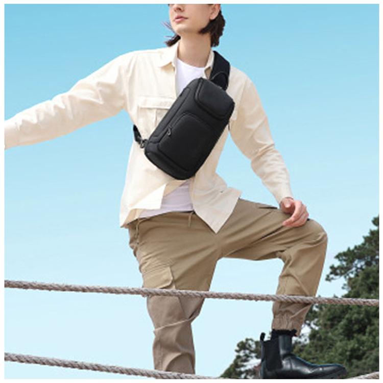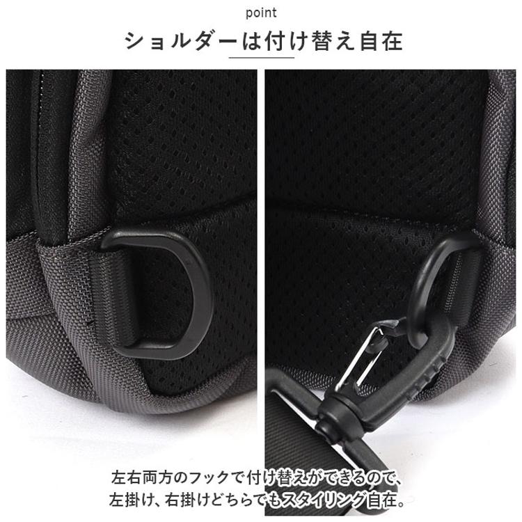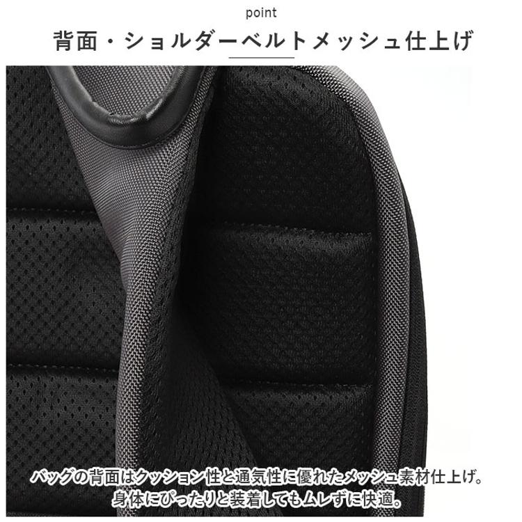 ・バッグの背面はクッション性と通気性に優れたメッシュ素材仕上げ。身体にぴったりと装着してもムレずに快適。