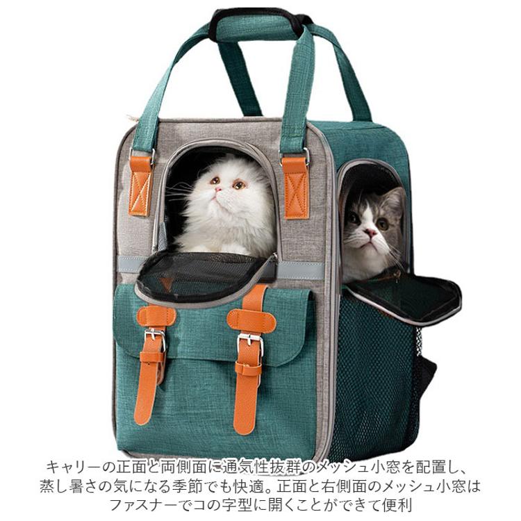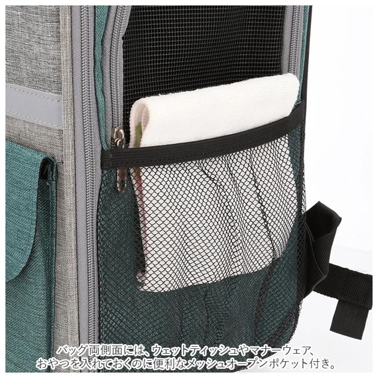 ・正面と右側面のメッシュ小窓はファスナーでコの字型に開くことができるので、外出途中におやつをあげたり、ペットの頭を撫でで安心させてあげたいときに便利。
