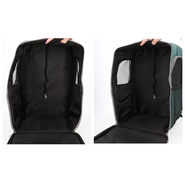 ・リュック正面のダブルファスナーを解放すると、扉のようにパタンッと開いてペットの出入りもラクラク。