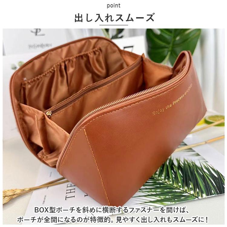 ・BOX型ポーチを斜めに横断するファスナーを開けば、ポーチが全開になるのが特徴的。見やすく出し入れもスムーズに!