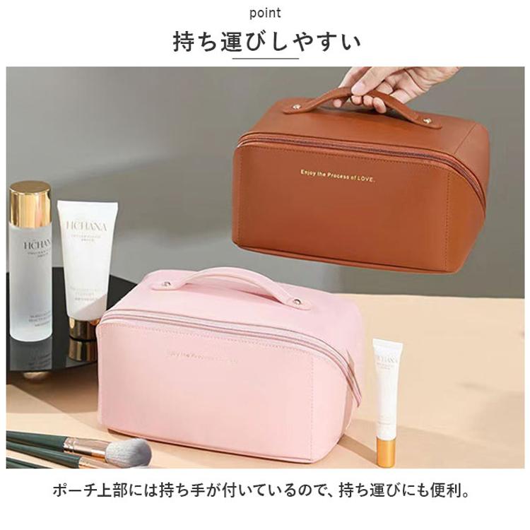 ・化粧品をボトルごと、ライン使いで収納できる大容量が魅力的!お気に入りのメイク道具一式はこのポーチにおまかせ♪