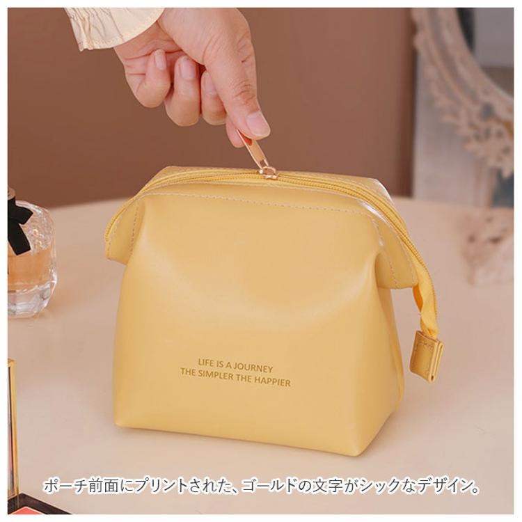 ・ポーチ前面にプリントされた、ゴールドの文字がシックなデザイン。