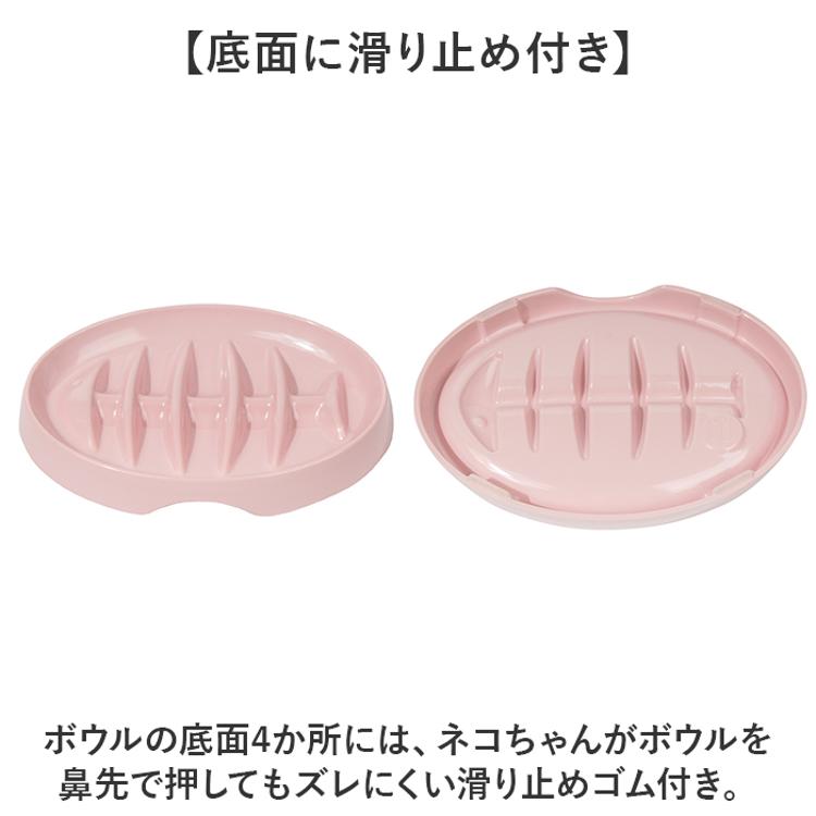 ・ボウルの底面4か所には、ネコちゃんがボウルを鼻先で押してもズレにくい滑り止めゴム付き。