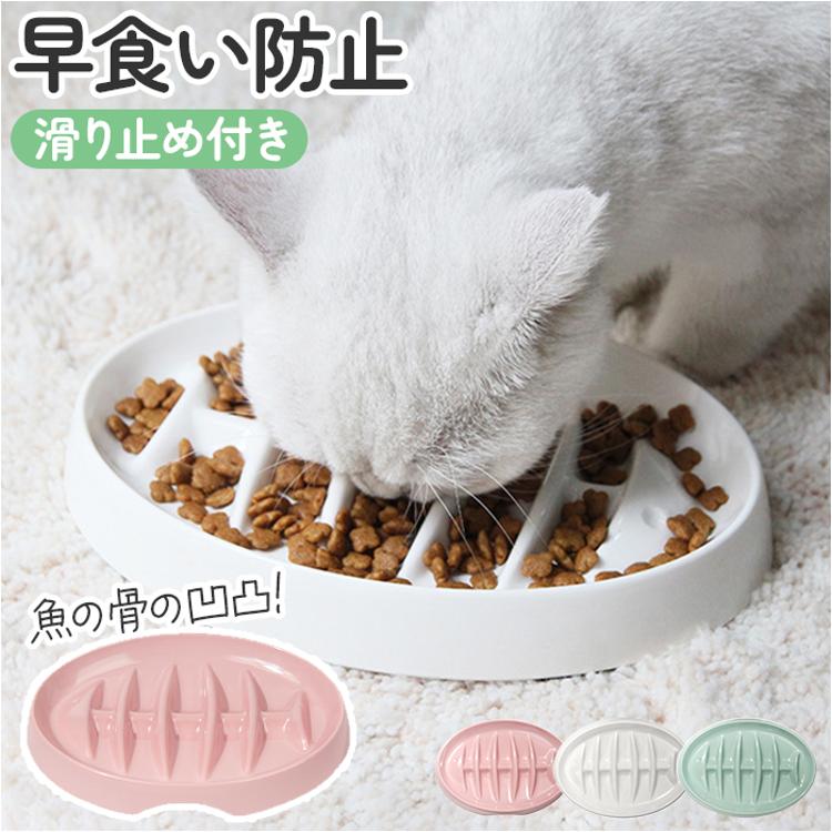 ・猫ちゃんの大好物、魚の骨をコミカルにデザイン!早食いや肥満を防ぐためのスローフィーダー。