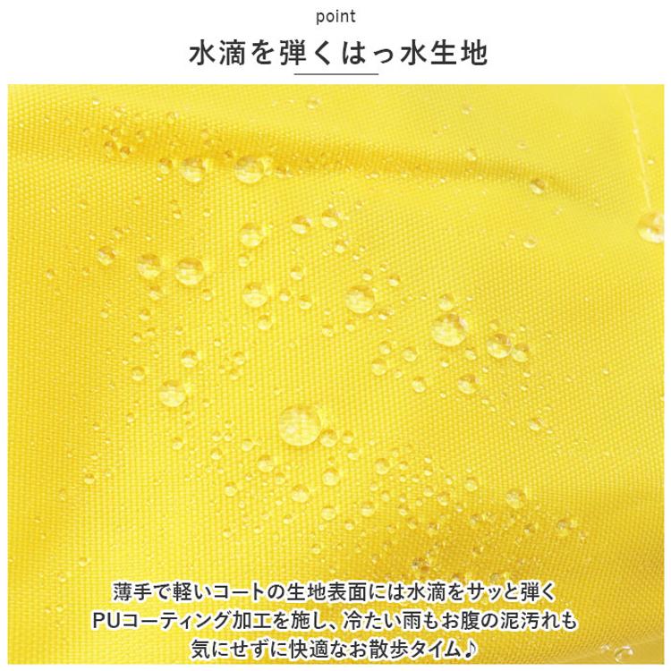 ・薄手で軽いコートの生地表面には水滴をサッと弾くPUコーティング加工を施し、冷たい雨もお腹の泥汚れも気にせずに快適なお散歩タイム♪