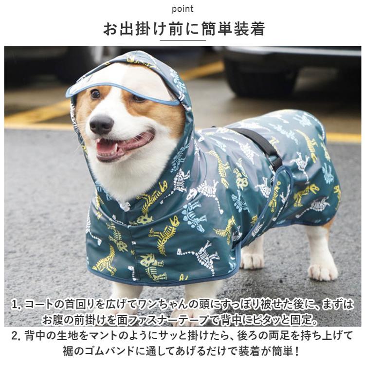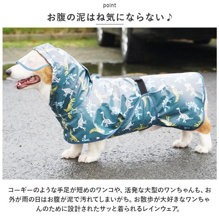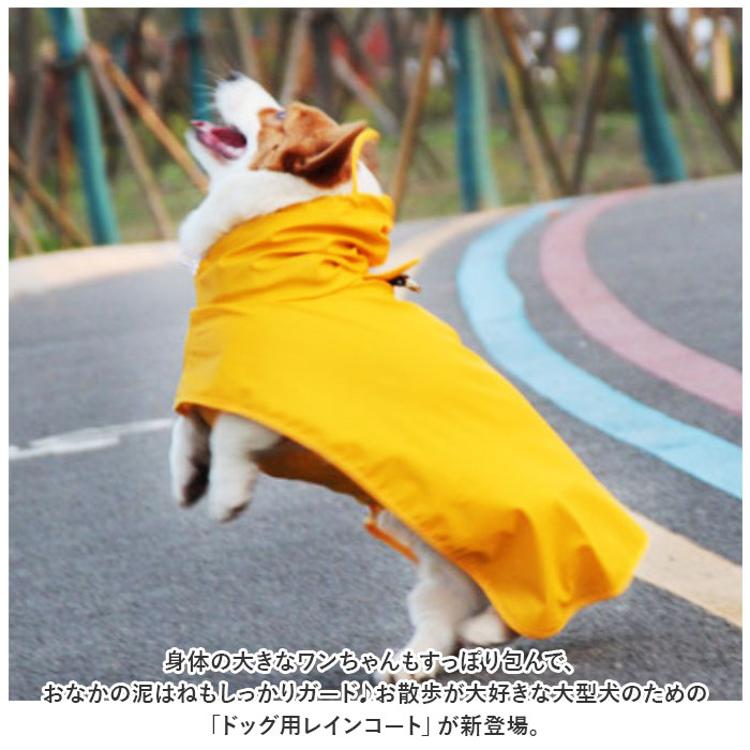 ・コーギーのような手足が短めのワンコや、活発な大型のワンちゃんも、お外が雨の日はお腹が泥で汚れてしまいがち。お散歩が大好きなワンちゃんのために設計されたサッと着られるレインウェア。