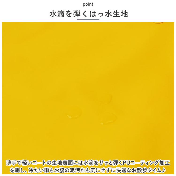 ・薄手で軽いコートの生地表面には水滴をサッと弾くPUコーティング加工を施し、冷たい雨もお腹の泥汚れも気にせずに快適なお散歩タイム♪