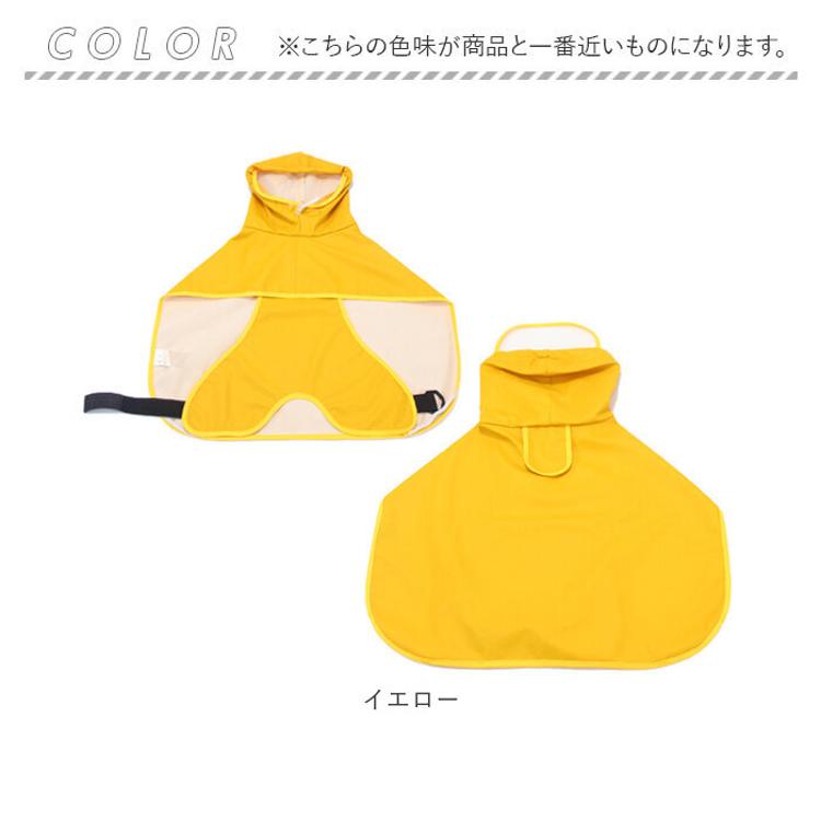 ・ふわっとかぶれるフードの正面にはソフトな透明ひさし付き。フードのフチがキュッと絞れて、冷たい雨や強い風からワンちゃんの頭をガード!