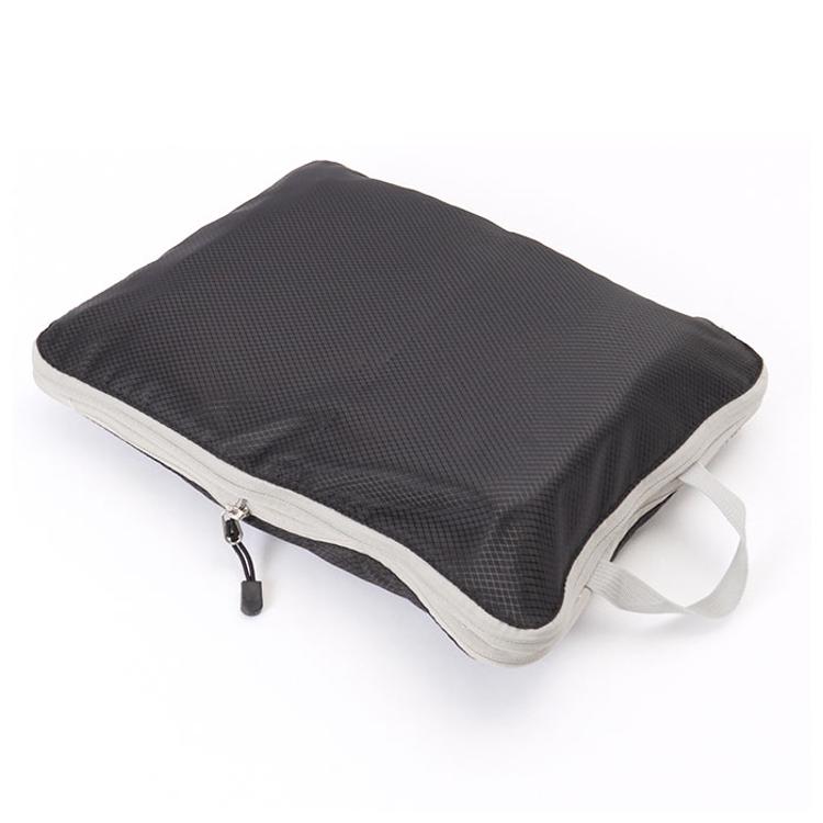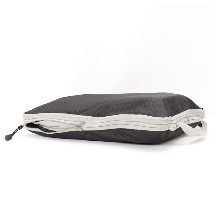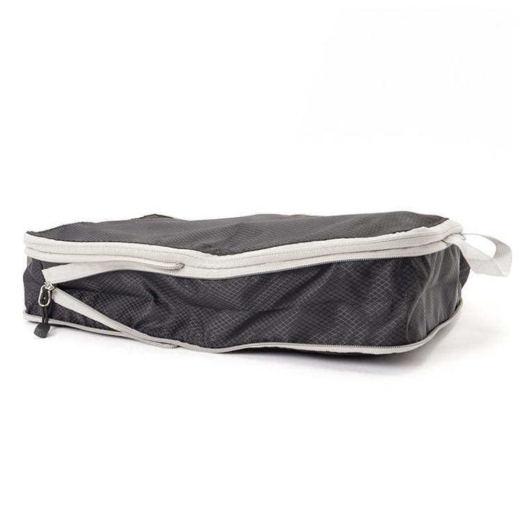 ・衣類や下着を収納し、全てのファスナーを閉めるだけで、厚みが半分程度にまで圧縮!