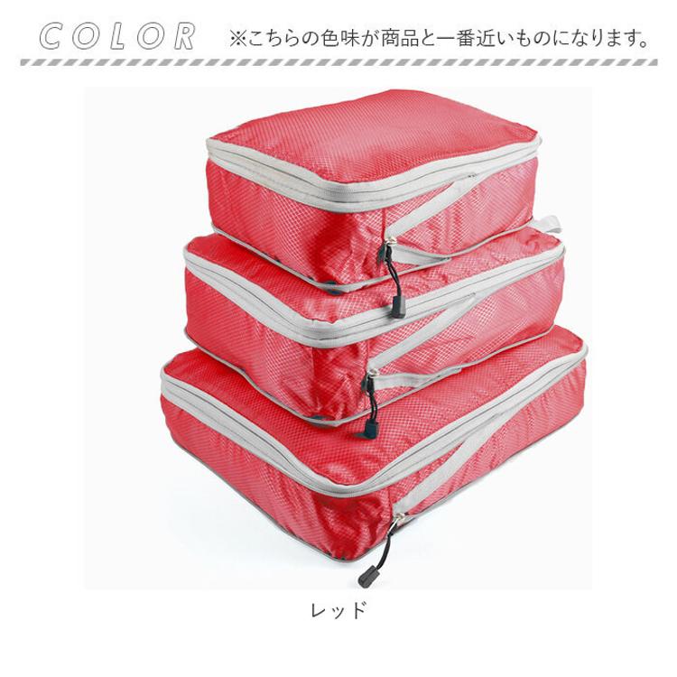 ・S・M・Lサイズのポーチ3点セット。Sサイズは下着類、MサイズはTシャツ、Lサイズはズボンなどの収納に便利。