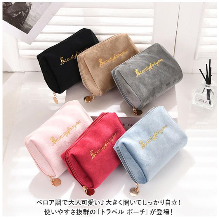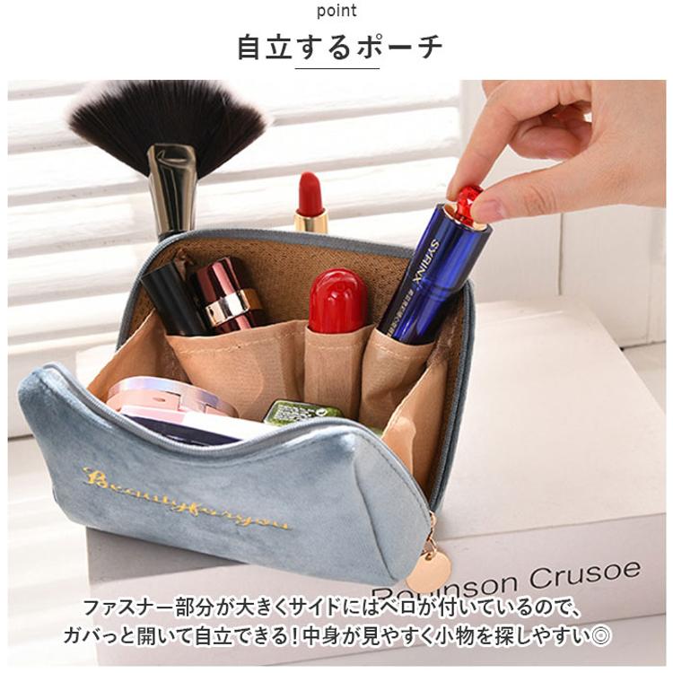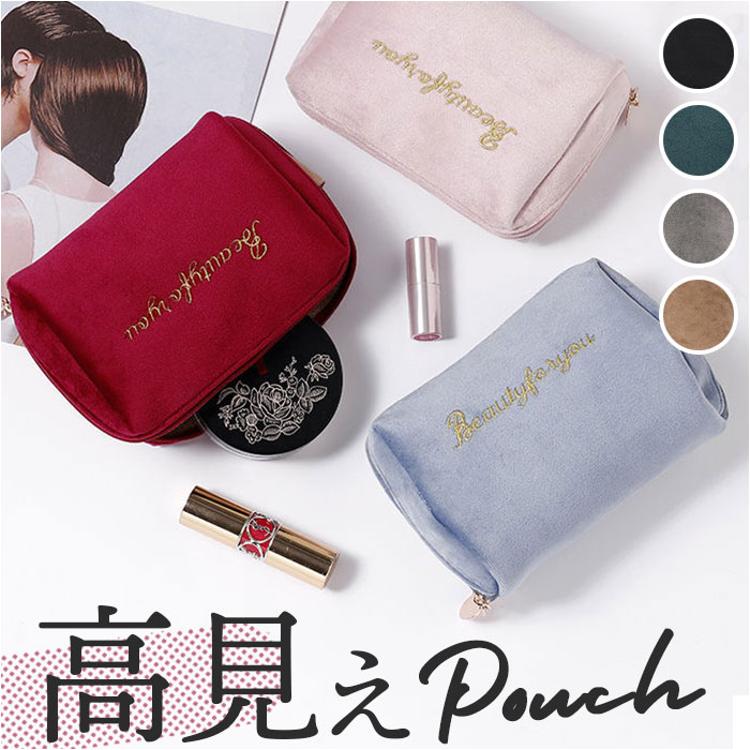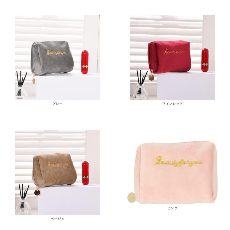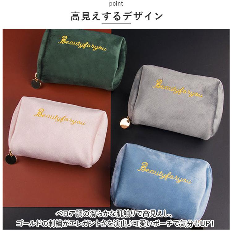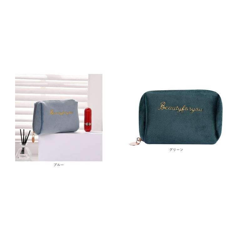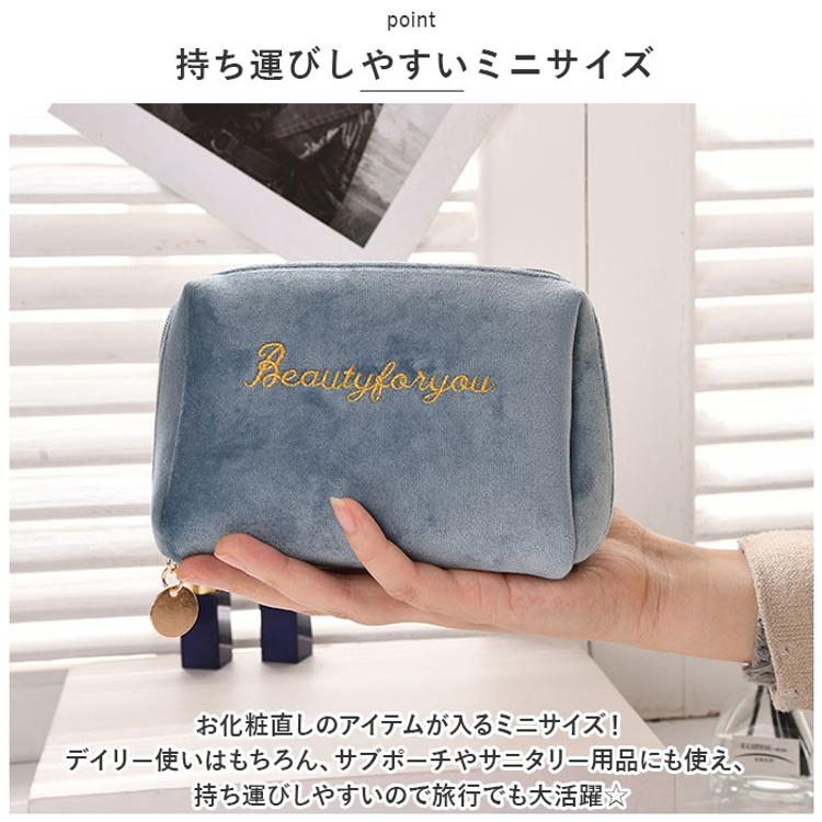 ・ベロア調の滑らかな肌触りで高見えし、ゴールドの刺繍がエレガントさを演出♪可愛いポーチで気分もUP!