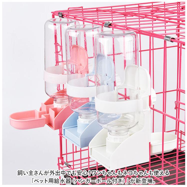 ・フローリングの床やケージの底面に直置きできるのはもちろん、給水器背面の丸いネジでペット用ケージ側面にも設置できるハンギングタイプ。