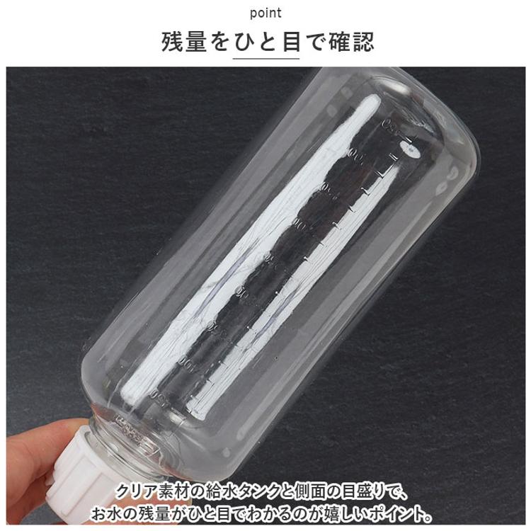 ・クリア素材の給水タンクと側面の目盛りで、お水の残量がひと目でわかるのが嬉しいポイント。