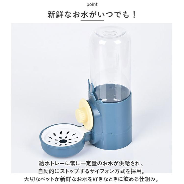 ・給水トレーに常に一定量のお水が供給され、自動的にストップするサイフォン方式を採用。大切なペットが新鮮なお水を好きなときに飲める仕組み。