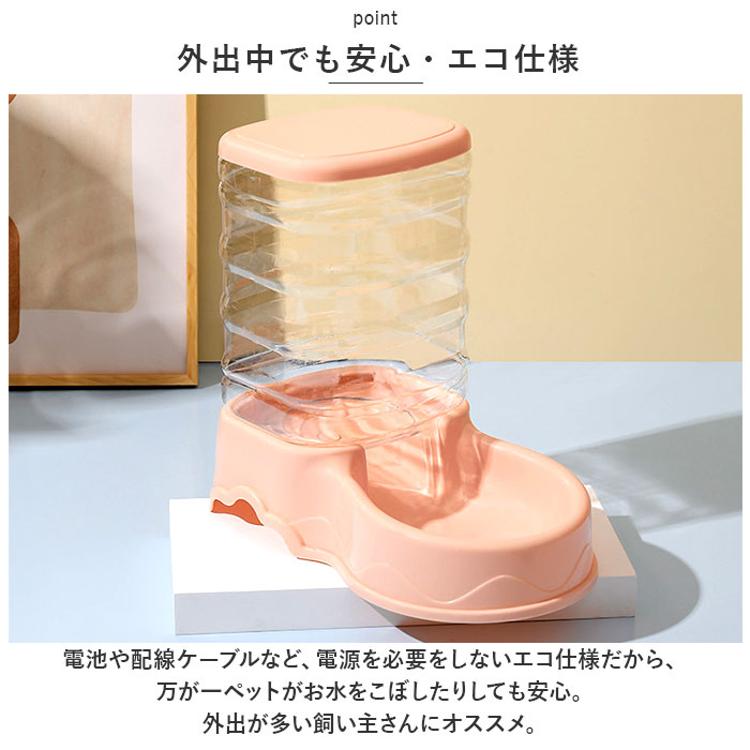 ・電池や配線ケーブルなど、電源を必要をしないエコ仕様だから、万が一ペットがお水をこぼしたりしても安心。外出が多い飼い主さんにオススメ。