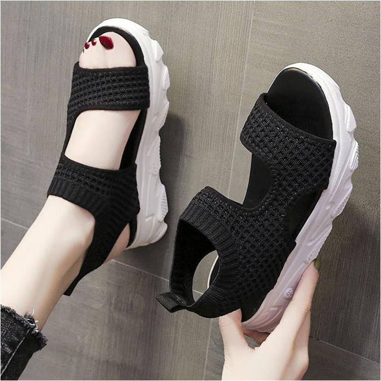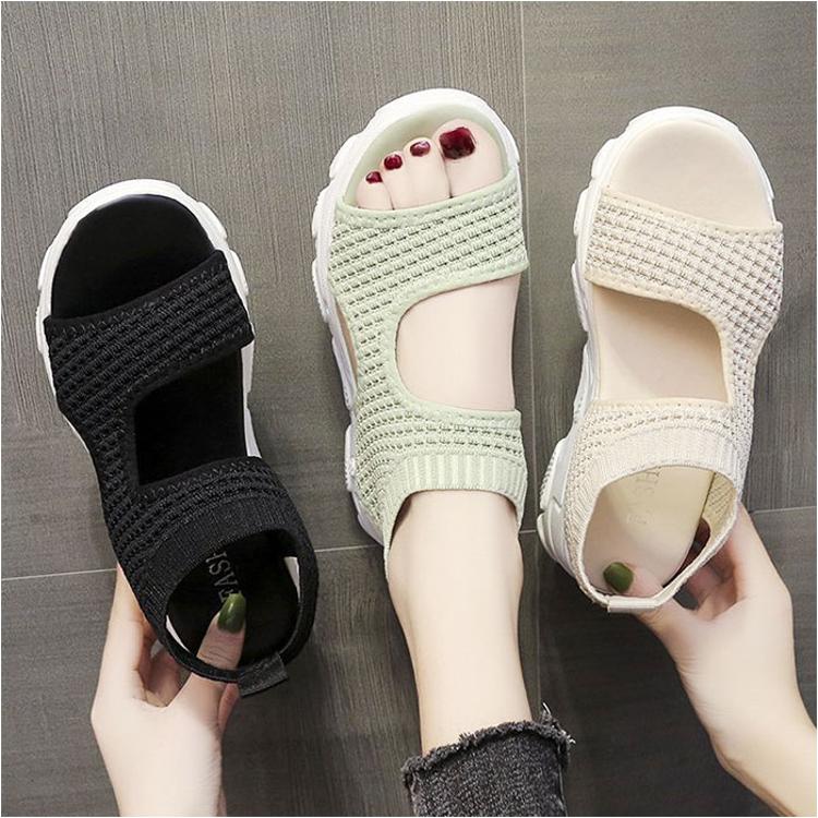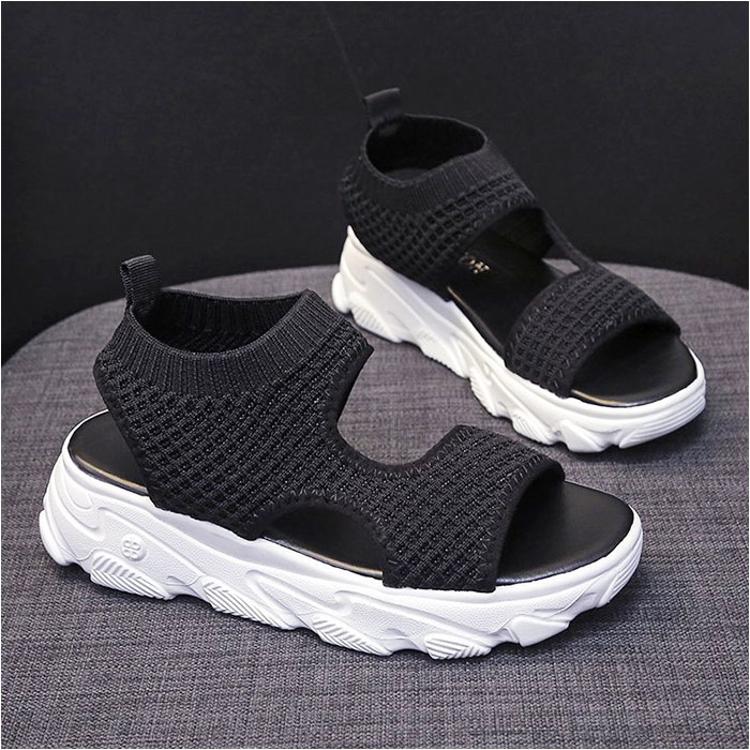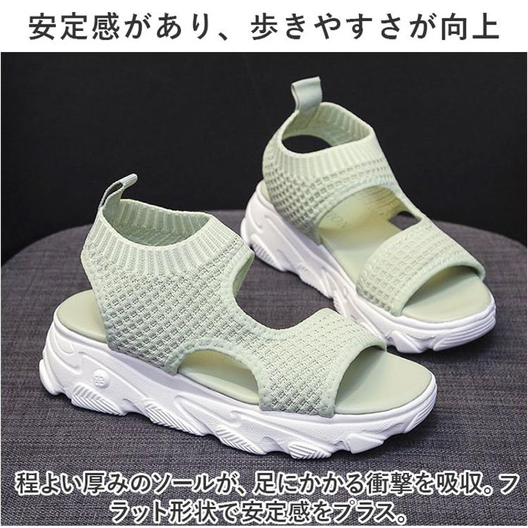 ・通気性に優れた素材に、つま先のあいたオープントゥデザイン。真夏でもムレにくいのがポイント。