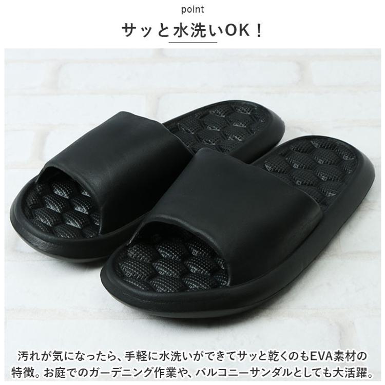 ・汚れが気になったら、手軽に水洗いができてサッと乾くのもEVA素材の特徴。お庭でのガーデニング作業や、バルコニーサンダルとしても大活躍。