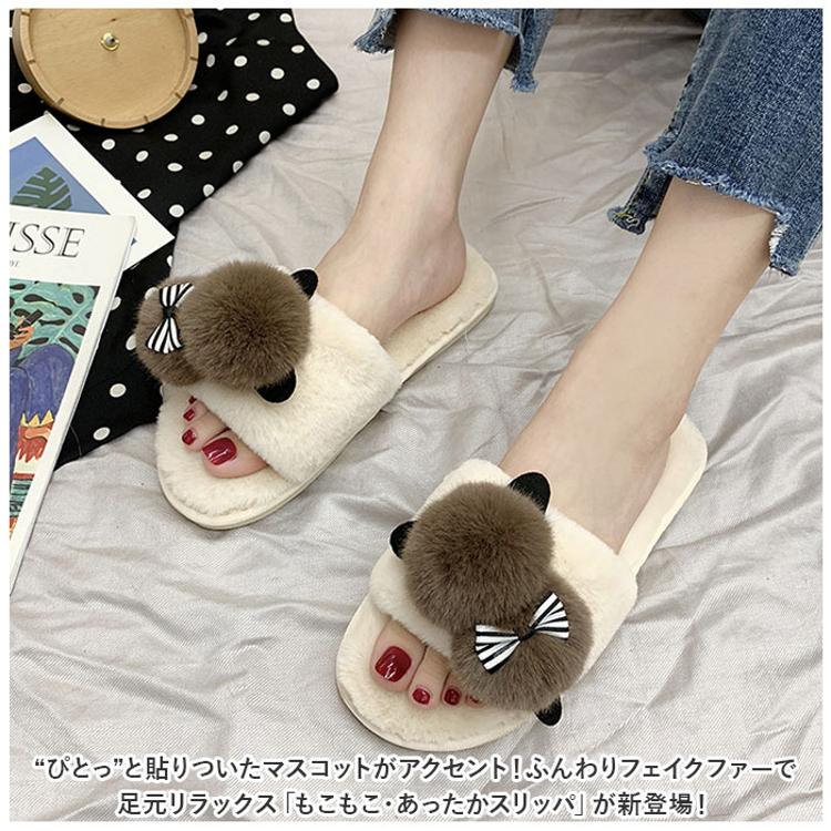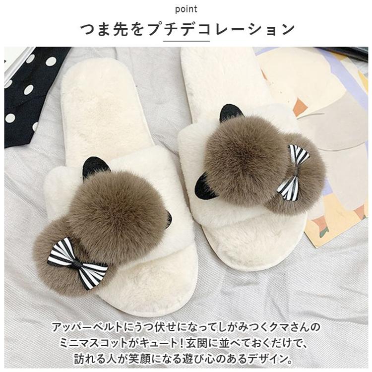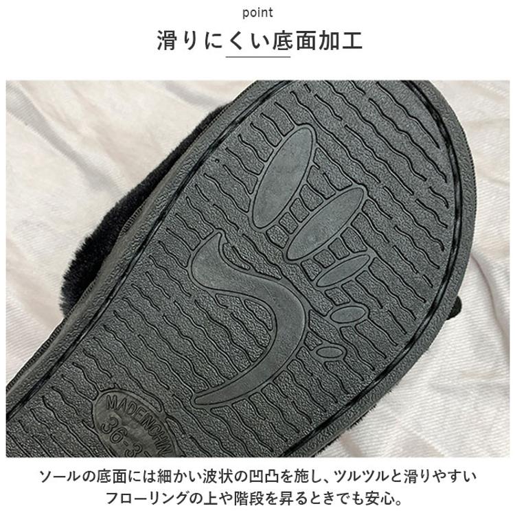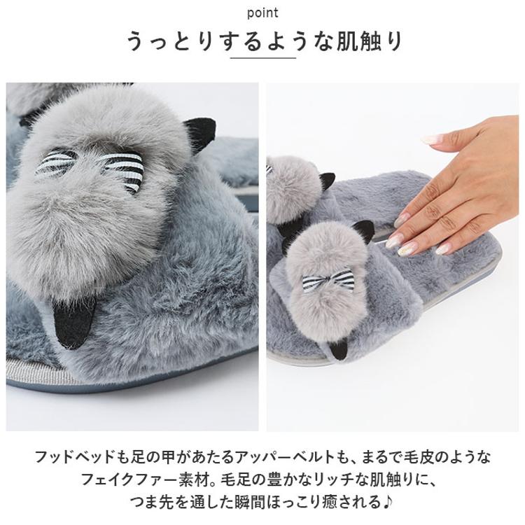 ・フッドベッドも足の甲があたるアッパーベルトも、まるで毛皮のようなフェイクファー素材。毛足の豊かなリッチな肌触りに、つま先を通した瞬間ほっこり癒される♪