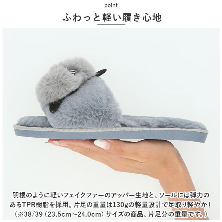 ・羽根のように軽いフェイクファーのアッパー生地と、ソールには弾力のあるTPR樹脂を採用。片足の重量は130gの軽量設計で足取り軽やか!(※38/39(23.5cm~24.0cm)サイズの商品、片足分の重量です。)