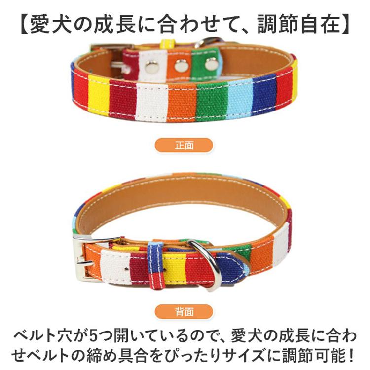 ・色鮮やかな虹色のドッグ・カラーでお洒落にお出掛け♪「カラフル・ドッグ用首輪」が新登場。