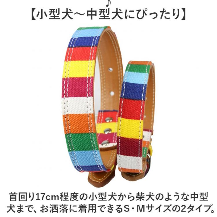 ・首回り17cm程度の小型犬から柴犬のような中型犬まで、お洒落に着用できるS・Mサイズの2タイプ。
