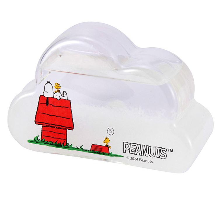 ・白い結晶が浮かぶガラス容器に、犬小屋に寝そべるスヌーピーを描きだしたビンテージデザイン。