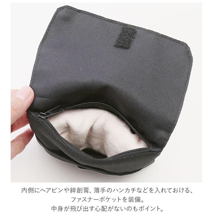 ・内側にヘアピンや絆創膏、薄手のハンカチなどを入れておける、ファスナーポケットを装備。中身が飛び出す心配がないのもポイント。