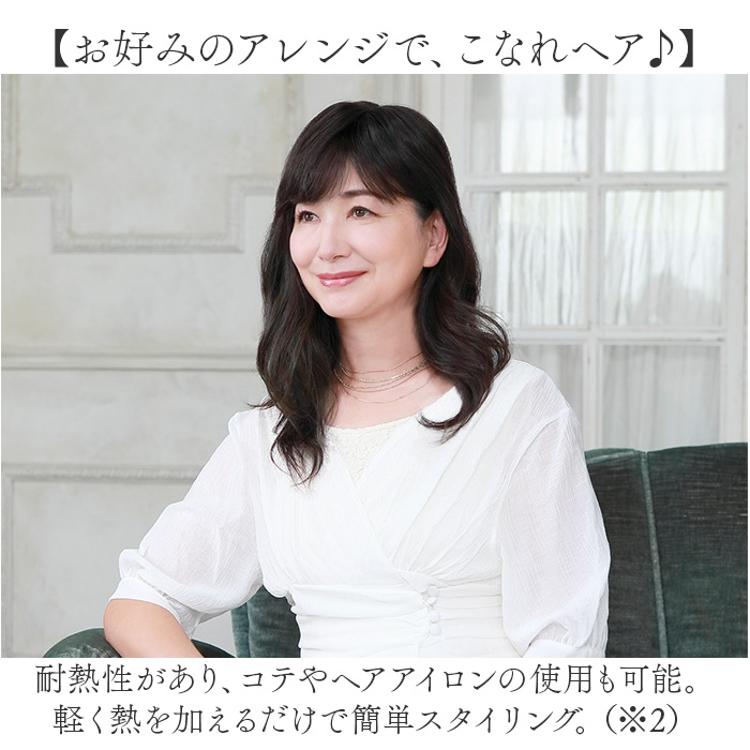 ・耐熱性があり、コテやヘアアイロンの使用も可能。軽く熱を加えるだけで簡単スタイリング。