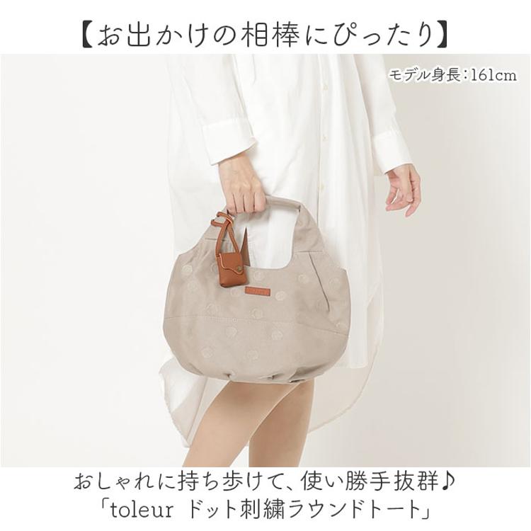 ・おしゃれに持ち歩けて、使い勝手抜群♪「toleur ドット刺繍ラウンドトート」。