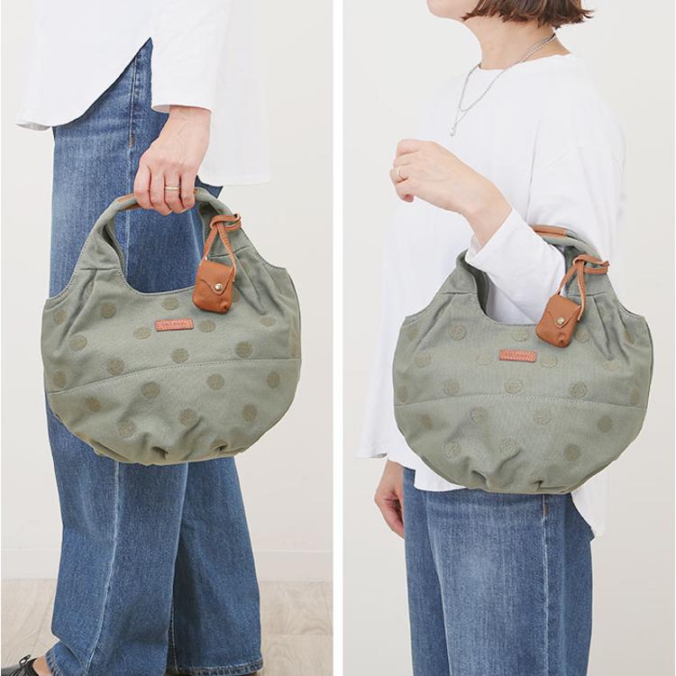 ・ナチュラルなキャンバス生地に、ボディと同色のドット刺繍をON!上品な印象を演出。