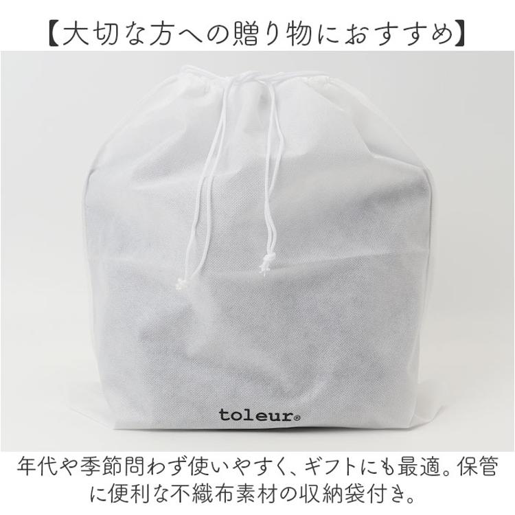 ・年代や季節問わず使いやすく、ギフトにも最適。保管に便利な不織布素材の収納袋付き。