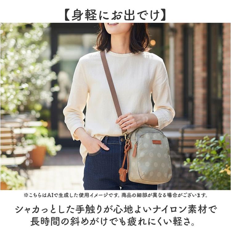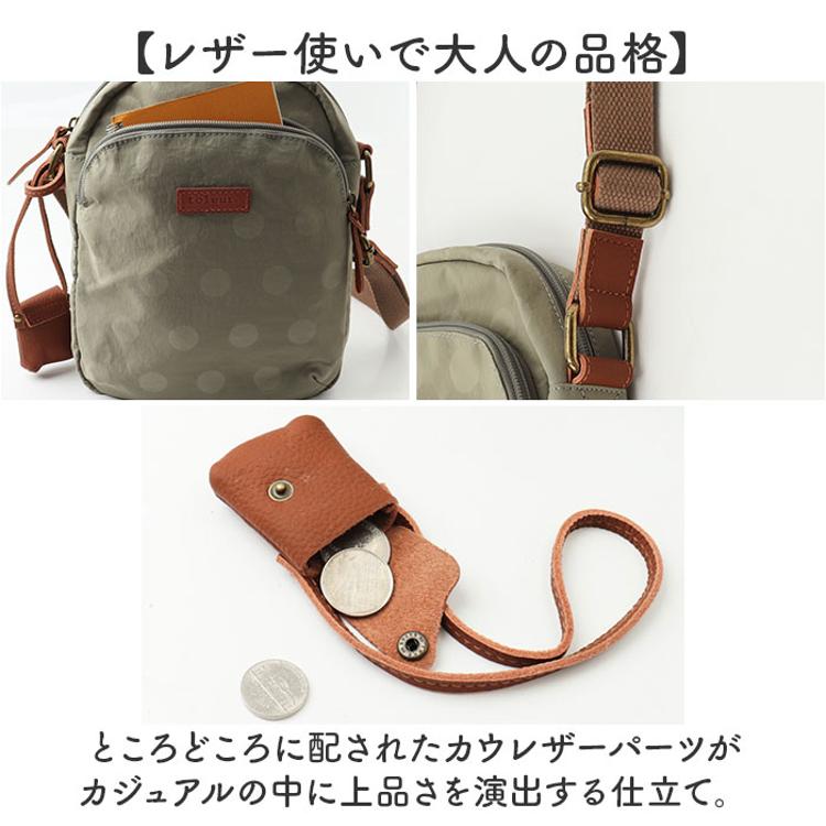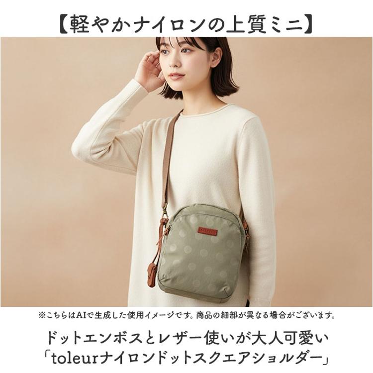 ・ドットエンボスとレザー使いが大人可愛い「toleurナイロンドットスクエアショルダー」