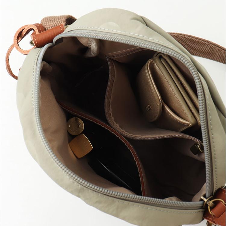 ・シャカっとした手触りが心地よいナイロン素材で長時間の斜めがけでも疲れにくい軽さ。