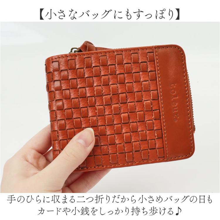 toleur 財布 トーラ 12021 通販 二つ折り財布 2つ折り財布 折財布 ミニ財布 レディース 本革 レザー L字ファスナー 小銭入れあり 牛革 カウレザー 女性 大人 おしゃれ シンプル 上品 ブランド かわいい メッシュ編み レディース財布