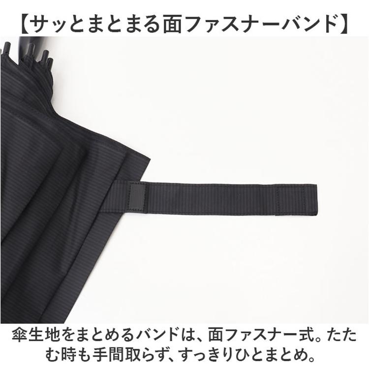 ・傘生地をまとめるバンドは、面ファスナー式。たたむ時も手間取らず、すっきりひとまとめ。