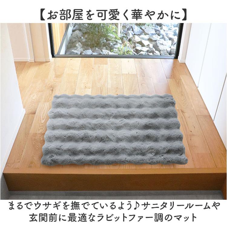 ・まるでウサギを撫でているよう♪サニタリールームや玄関前に最適なラビットファー調のマット