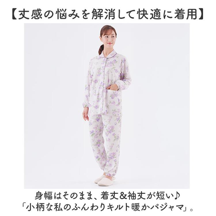 ・身幅はそのまま、着丈&袖丈が短い♪「小柄な私のふんわりキルト暖かパジャマ」。