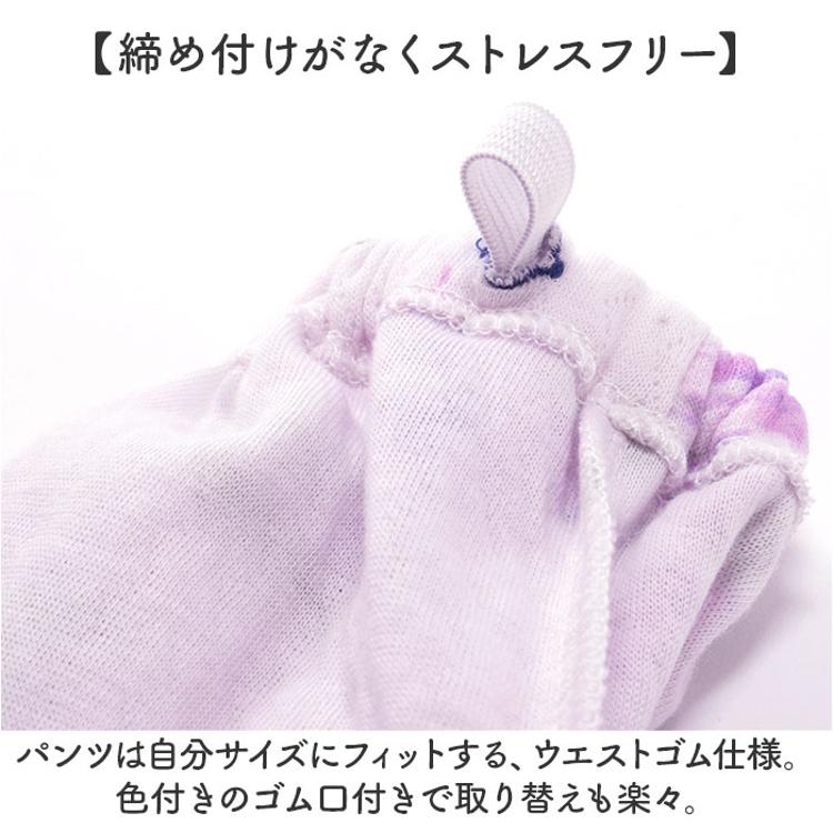 ・パンツは自分サイズにフィットする、ウエストゴム仕様。色付きのゴム口付きで取り替えも楽々。