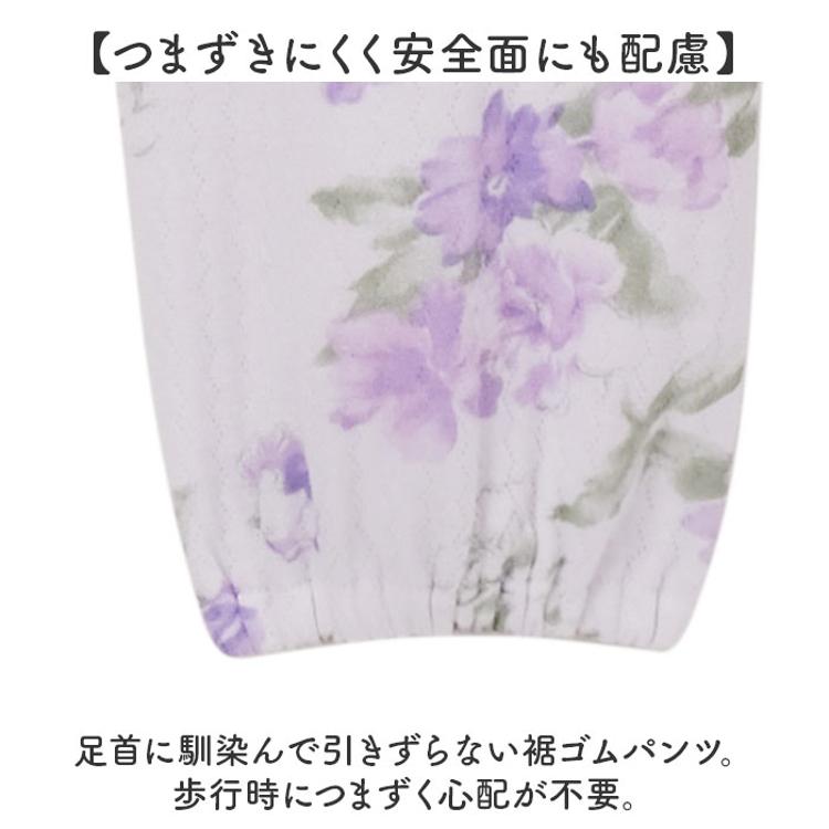・水彩風の花柄を全面にプリント。リラックスタイムをおしゃれに過ごせて、気分もアップ♪