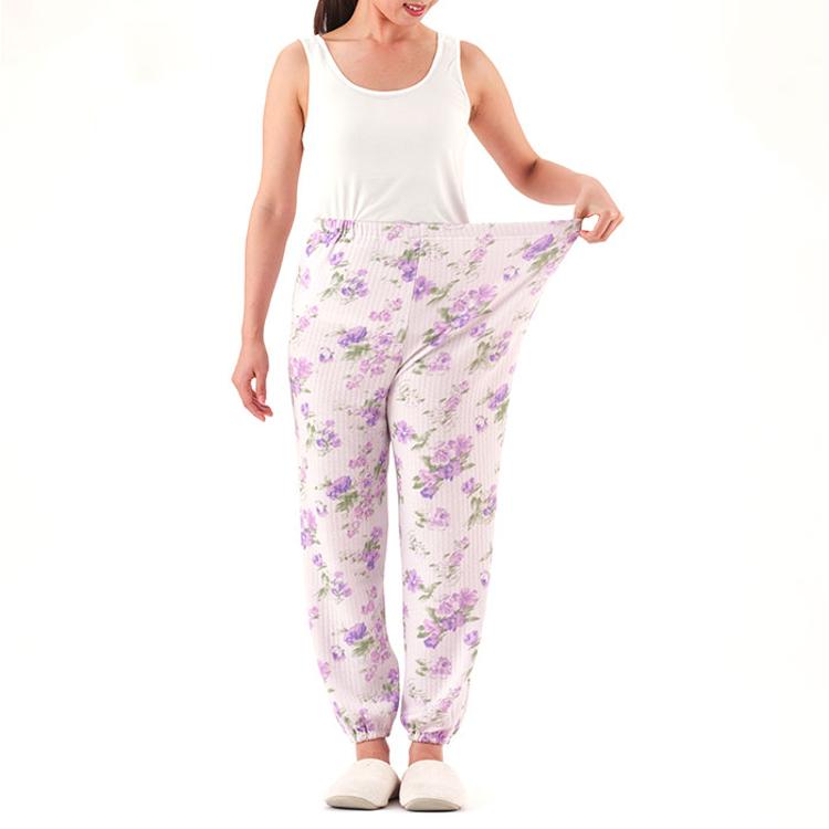・足首に馴染んで引きずらない裾ゴムパンツ。歩行時につまずく心配が不要。
