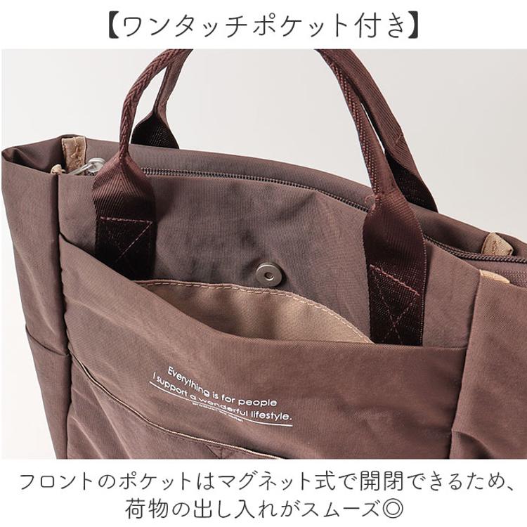 ・内外あわせて11のポケットにはA4・長財布・500mlペットボトルもらくらく、毎日の荷物をまとめる。