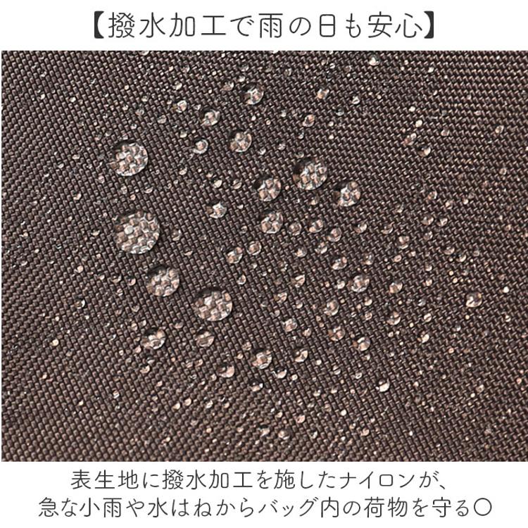 ・表生地に撥水加工を施したナイロンが、急な小雨や水はねからバッグ内の荷物を守る〇