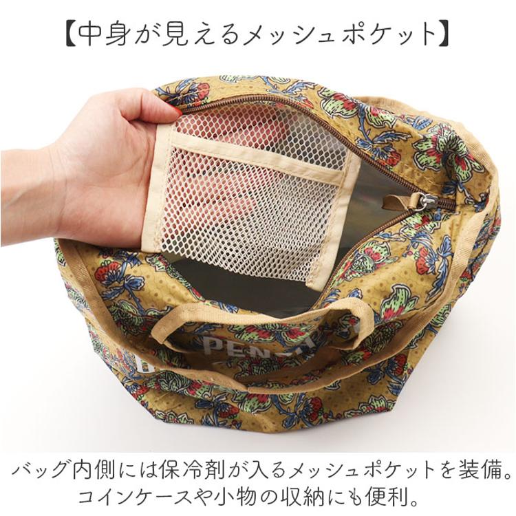 ・バッグ内側には保冷剤が入るメッシュポケットを装備。コインケースや小物の収納にも便利。