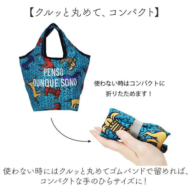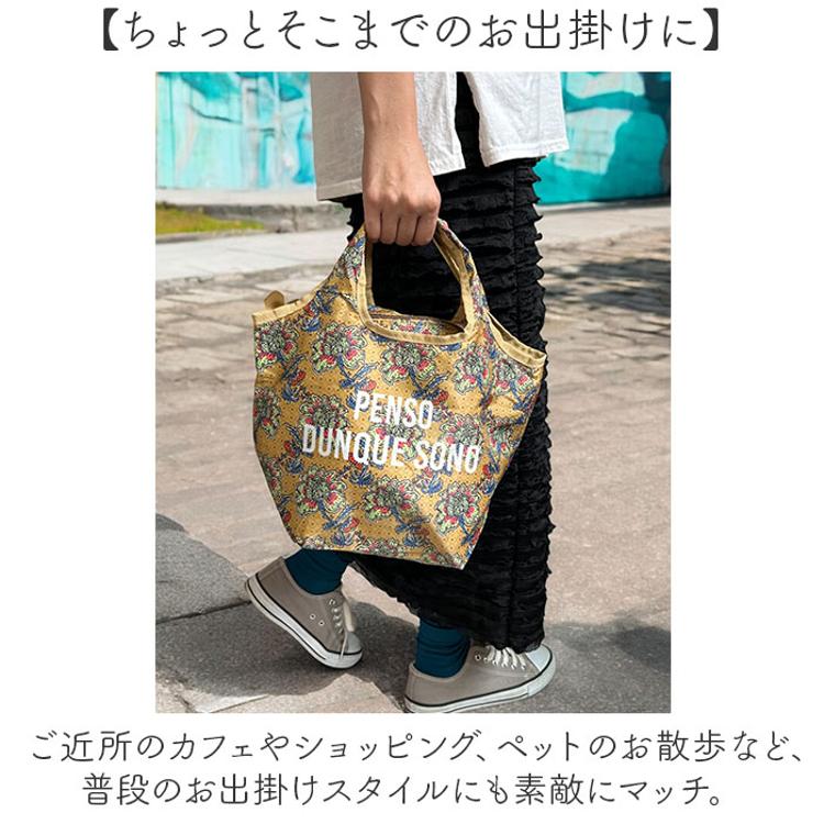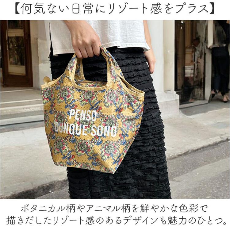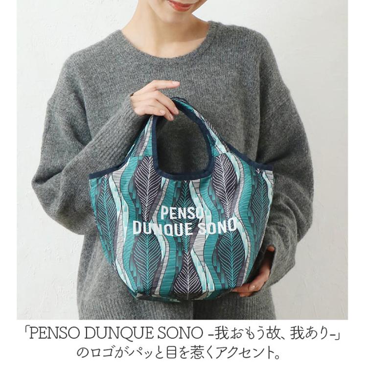 ・ボタニカル柄やアニマル柄を鮮やかな色彩で描きだしたリゾート感のあるデザインも魅力のひとつ。「PENSO DUNQUE SONO -我おもう故、我あり-」のロゴがパッと目を惹くアクセント。