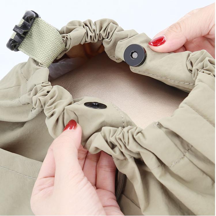 ・開口部は大きく、ザクザク収納できる。パチッとマグネットボタンで荷物が飛び出さない!