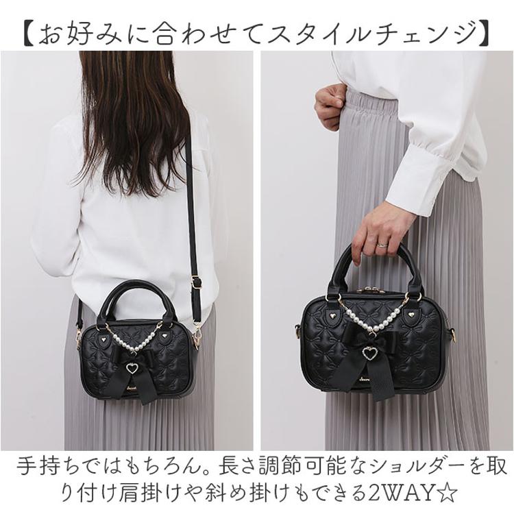 ・イミテーションパールとキラッと輝くハートビジュー付きのリボンチャームもアクセント♪
