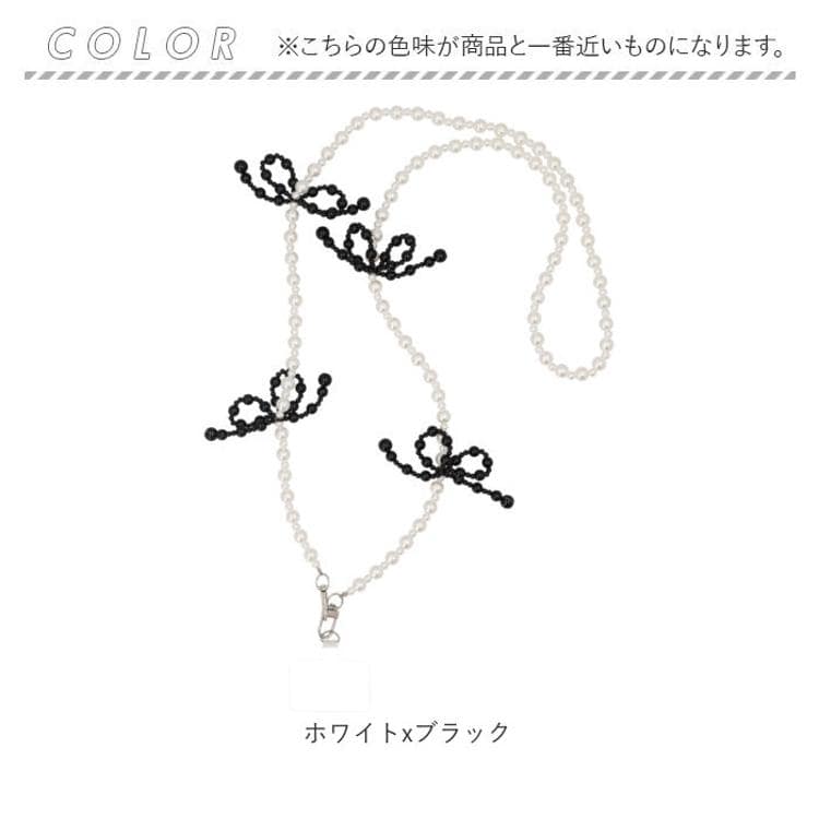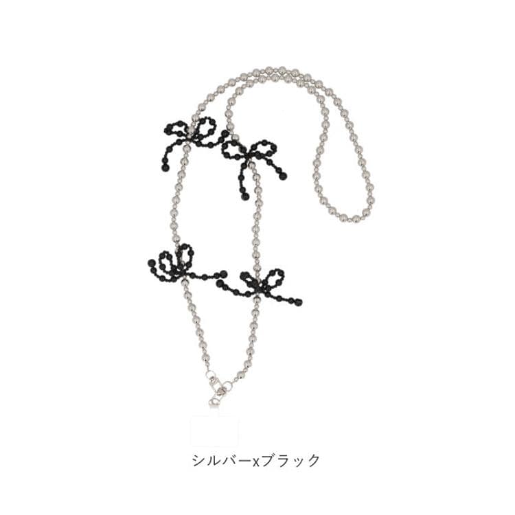 ・まあるいビーズを繋げたストラップと、リボンモチーフ。キレイめコーデにもマッチ!