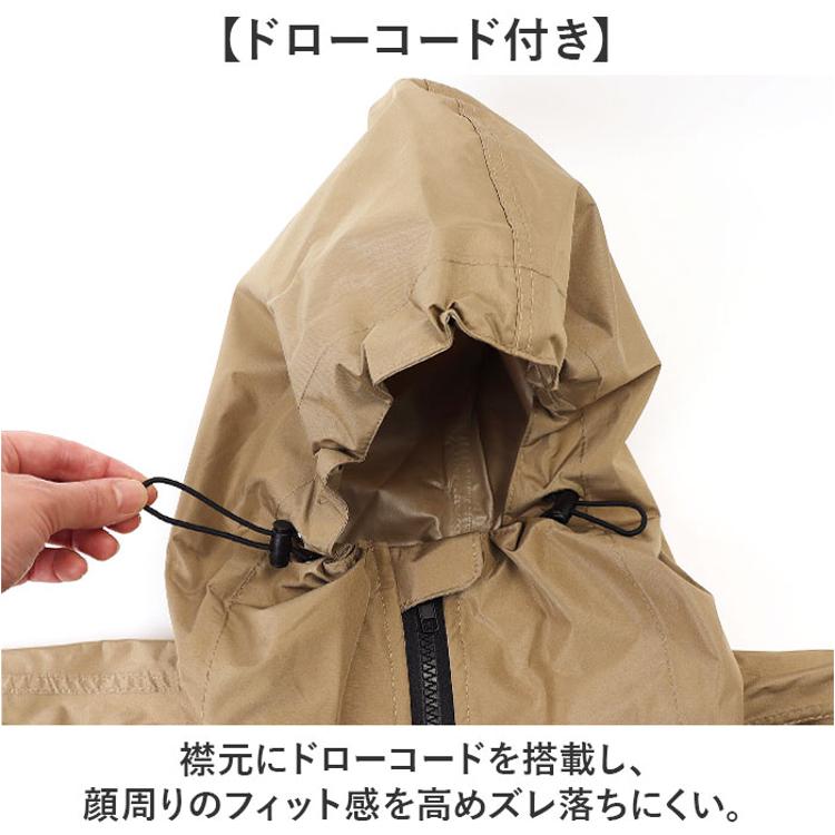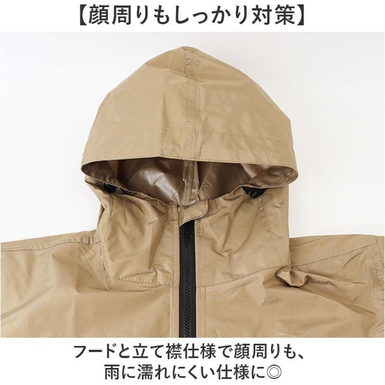 ・フードと立て襟仕様で顔周りも、雨に濡れにくい仕様に◎